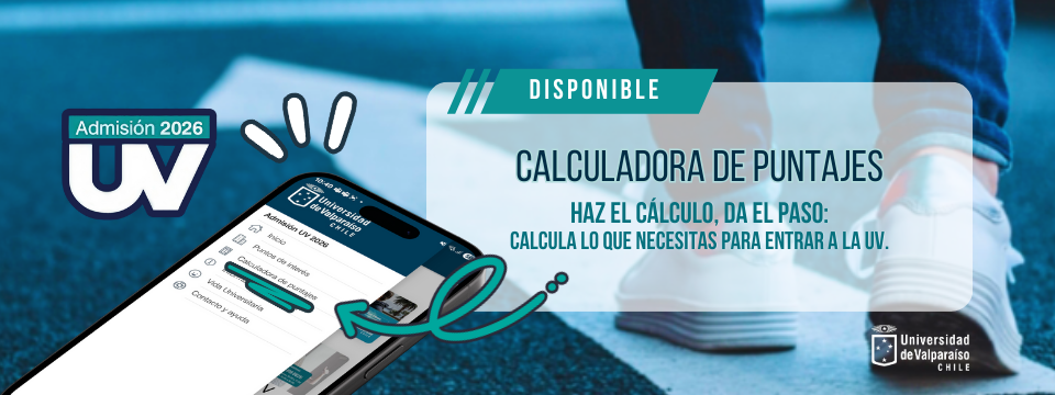 En la aplicación Admisión UV ahora cuentas con una herramienta diseñada especialmente para acompañarte en tu proceso de postulación: la Calculadora de Puntajes. Disponible directamente desde el menú de inicio, esta funcionalidad te permite simular los puntajes necesarios para ingresar a la carrera que deseas en la Universidad de Valparaíso.