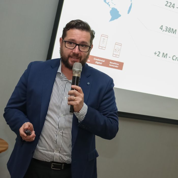 El primer ciclo de presentaciones del encuentro de análisis y reflexión sobre la AppTUI finalizó con la exposición del delivery manager de Negocios Digitales de Santander Corporativo, Leandro Galdino, quien habló sobre el plan de transformación y el programa de integración continua del Campus Digital, aplicación de carácter global vinculada a la red Universia, la cual hoy está disponible en siete países iberoamericanos, presta servicios en 244 instituciones de educación superior y conecta a más de cuatro millones de estudiantes.
