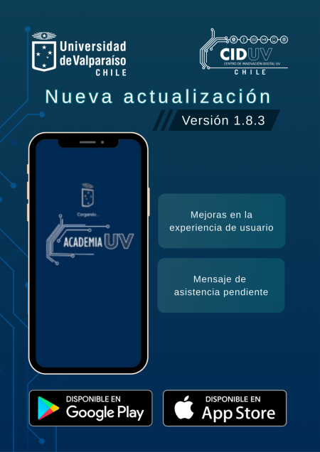 ¡Academia UV se actualiza! Versión 1.8.0 ya disponible para todos los académicos y funcionarios de la Comunidad UV. Novedades que mejoran tu experiencia: